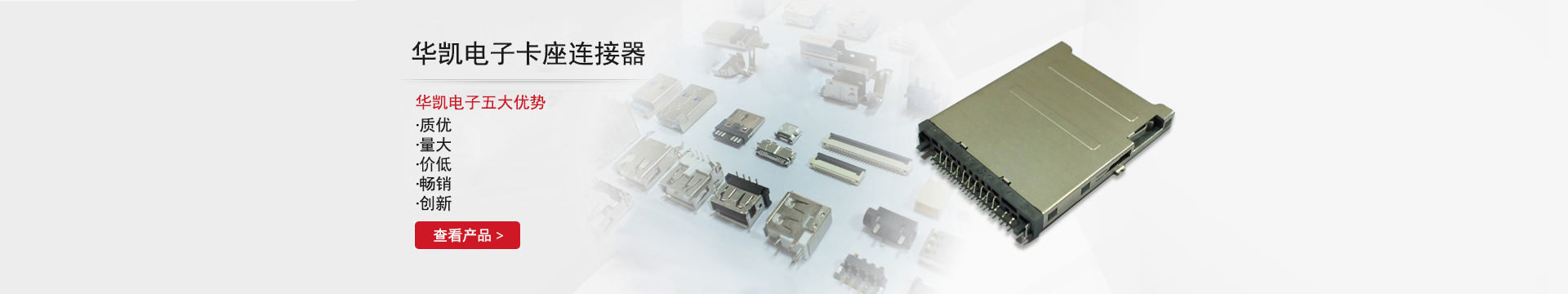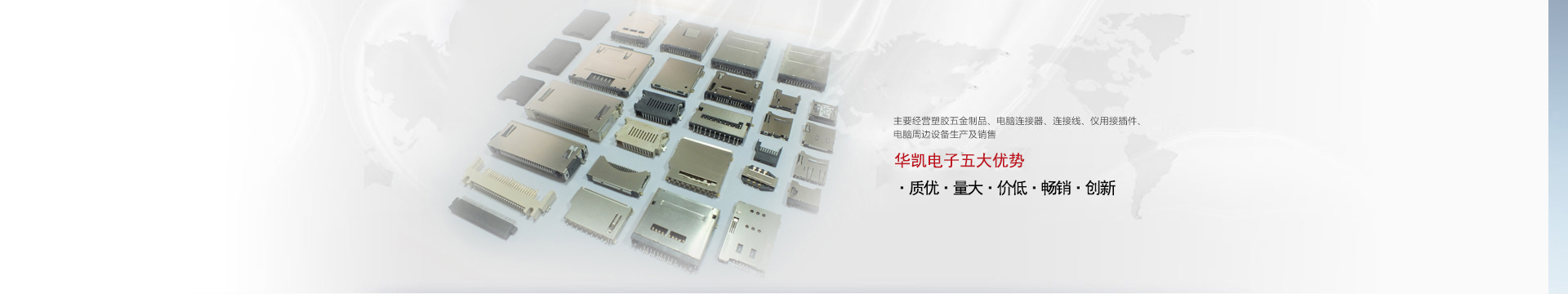 鄱陽縣華凱電子科技有限公司位于鄱陽縣城北工業園區,成立于2008年06月,主要經營塑膠五金制品、電腦連接器、連接線、儀用接插件、電腦周邊......